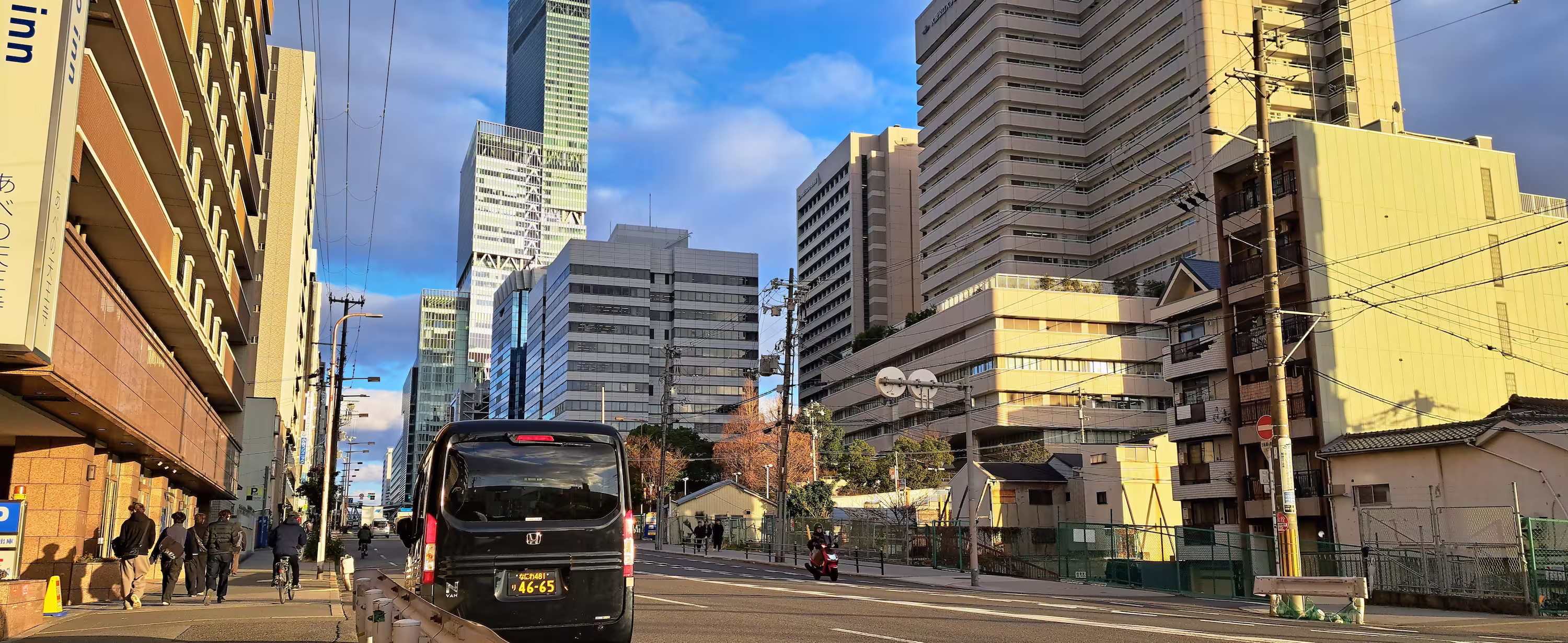 吃完了最後一次早餐、check-out 飯店後,我們動身前往旅途後半程的棲息地——大阪。車站售票人員建議我們搭急行列車而非較為昂貴的 Haruka 前往。但悲劇的是上車時發現沒有座位,一行人就這樣拉著大包小包的行李站了將近半小時,抵達時又在大得如同迷宮的大阪站走了 10 分鐘才終於搭上大阪市內自營電車。